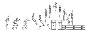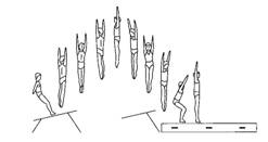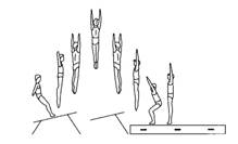 in das Mini-Trampolin-Springen. Der Anlauf soll auf einer Turnbank erfolgen,